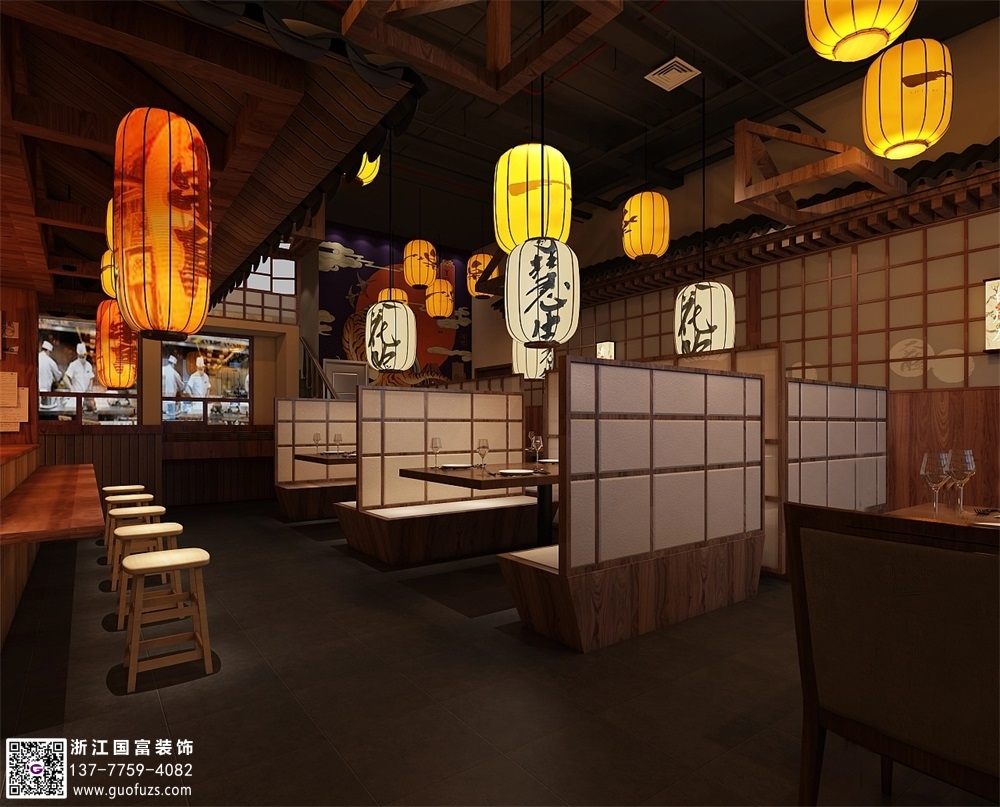 日式海鮮燒烤餐廳裝修設(shè)計(jì)案例效果圖